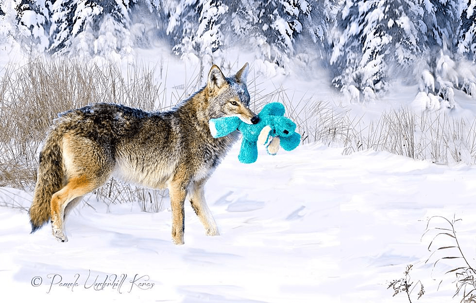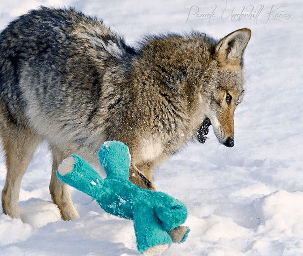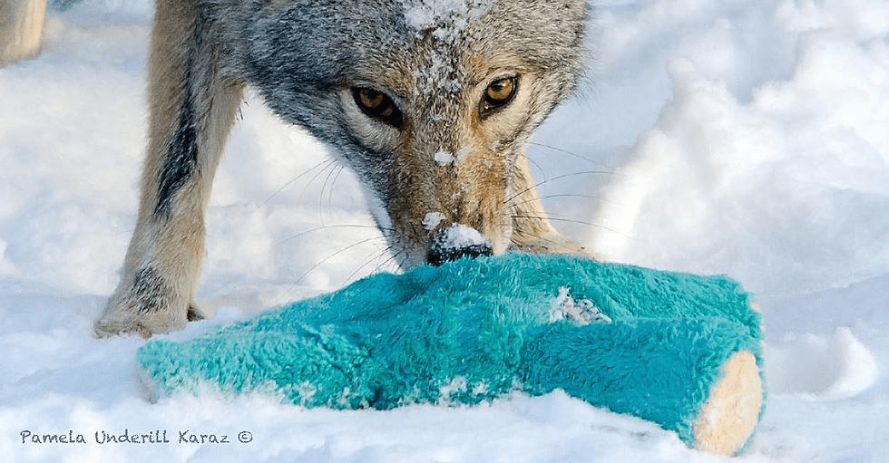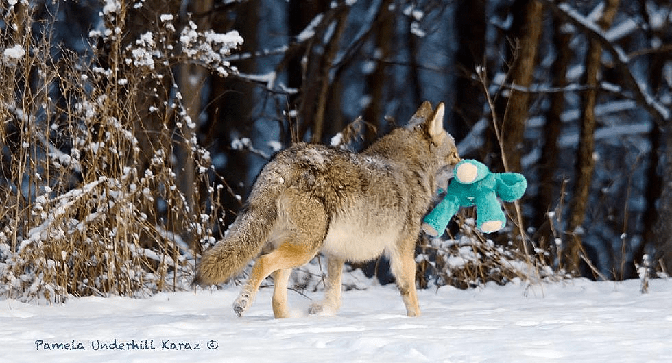 As for Karaz’s coyote, he trotted away with the toy in his mouth. She hasn’t seen him again, but her own dogs still have a habit of leaving their toys outside. Occasionally, she finds them in the woods nearby.