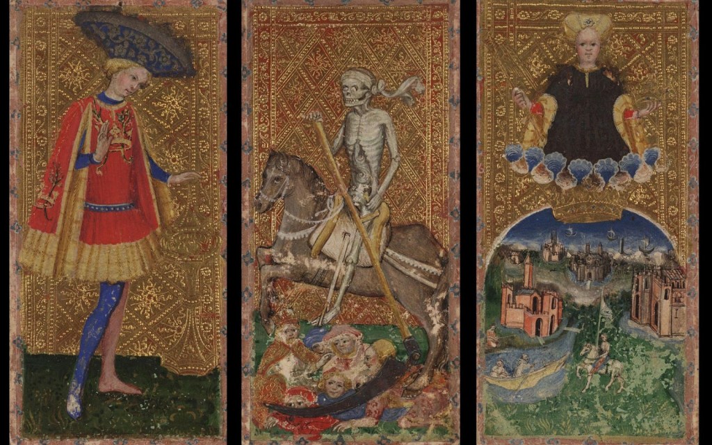 Bộ bài Tarot Visconti di Modrone, sản xuất tại Ý vào năm 1466. Bộ sưu tập được bảo quản tại Thư viện Sách Hiếm và Bản Thảo Beinecke, thuộc Đại học Yale.