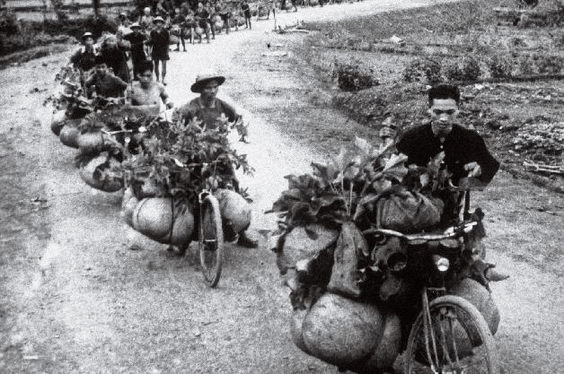 Twenty thousand men on specially reinforced bicycles carried rice and vegetables and other supplies to the Viet Minh at the front. “This method of transportation,” General Giap remembered, “greatly surprised the enemy’s army and completely upset his original calculations.”