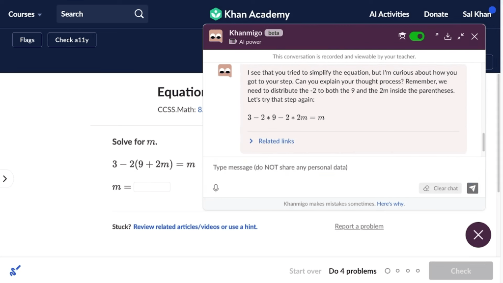 Sal Khan, người sáng lập Khan Academy, đang đi đầu trong việc đẩy mạnh này với công cụ AI của họ, Khanmigo.