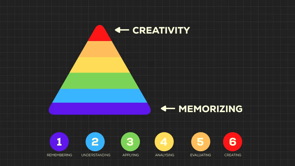 In 1956, educational psychologist Benjamin Bloom outlined a framework to better understand how we learn, hoping to start teaching students more effectively. He named it Bloom’s Taxonomy after himself. In short, it divided cognitive learning into six categories, ranked in a hierarchical order depending on how much thinking was required for each. Simply memorizing and recalling information doesn’t require much brain processing power, whereas tasks that emphasize creativity—like thinking outside the box—require much more thinking. The Industrial Age didn’t need people to think outside the box, so the education system was built on a low order of thinking.