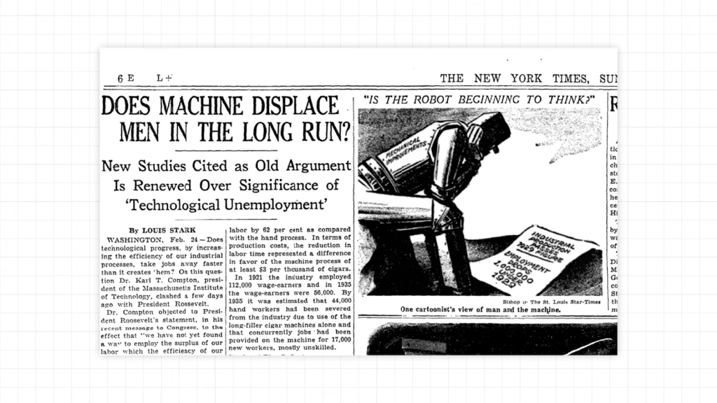 We now, of course, know this isn’t true. But AI is feared for a very similar reason. People fear what they don’t know or understand. The lack of knowledge surrounding what AI actually is and what it does, as well as Hollywood pushing a narrative that AI will take over the world, is causing that same sense of rejection for the same reasons we saw with the train. Since the beginning of automation itself, people have feared that their jobs would be replaced by machines.
